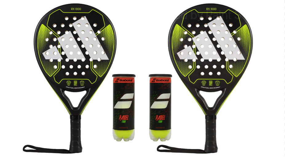 Paketet för dig och din partner som letar efter ett racket för er fortsatta utveckling. RX 1000 från Adidas kommer med en fräsch design med tanke på priset på racket. Adidas har varit duktiga på att producera sina racketar med en exklusiv look över alla modeller. Racketen är tillverkad av mjukt EVA-skum och en glasfiberyta, vilket ger dig en extremt bekväm racket som i kombination med sin runda huvudform ger spelaren den nödvändiga mängden kontroll.