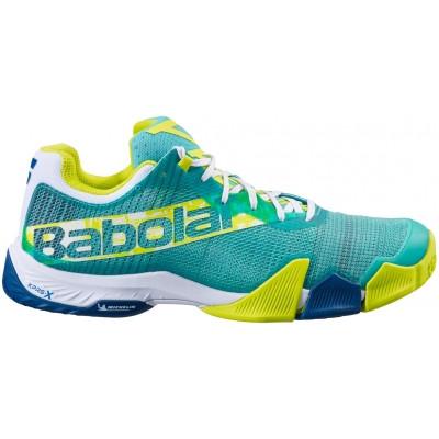 Babolat Jet Premura är en absolut toppklassig padelsko som används av WPT-toppspelaren Juan Lebron. Skon kännetecknas av att den är utvecklad för padelens rörelsemönster, som kännetecknas av många små steg i alla riktningar på banan. Skon erbjuder sublim stötdämpning och god komfort på samma gång.