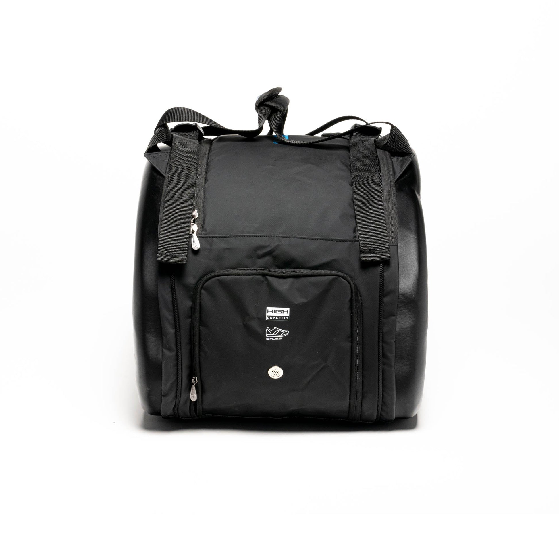 Väskan har dessutom ett separat ventilerat fack för fuktiga skor och kläder, samt mindre fickor för bollar och värdesaker. Väskans remmar är fodrade och bekväma att bära, så du kan välja om du vill bära väskan i handtagen eller på ryggen. Den är tillverkad av slitstark polyester och är motståndskraftig mot väder och vind.