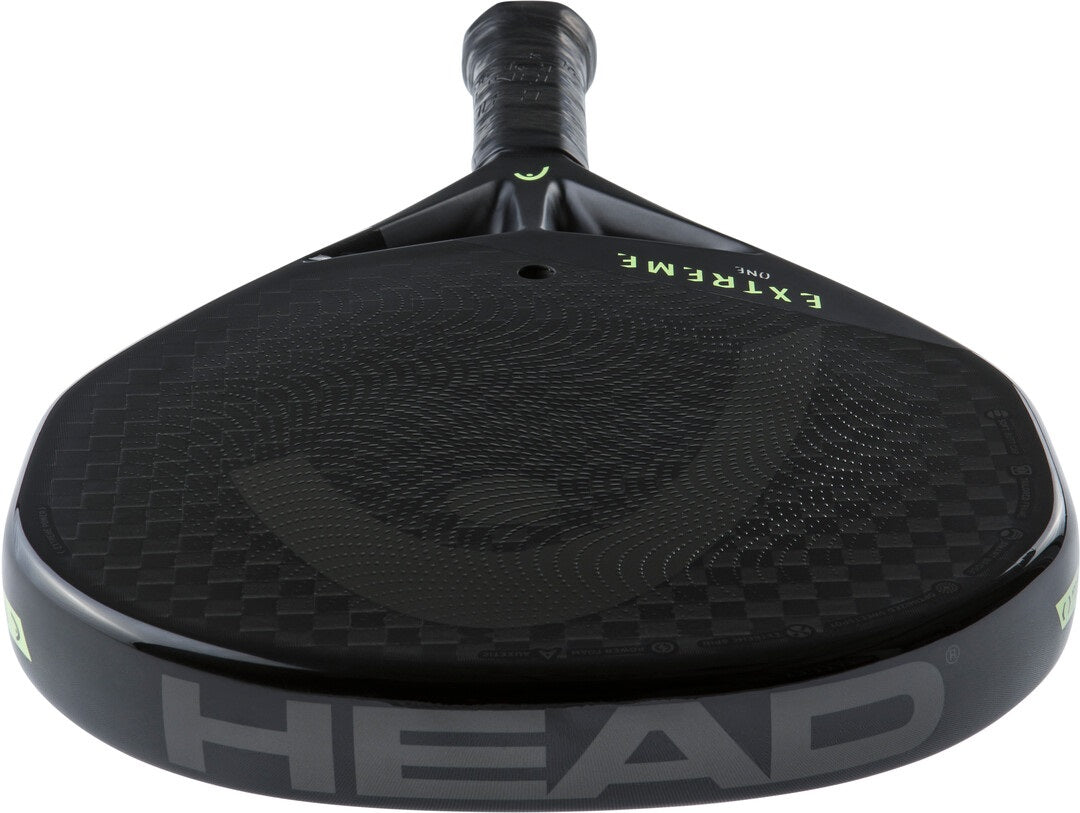 Head Extreme One 2023 är Heads efterlängtade padelrack, som sticker ut från mängden tack vare sin design med endast ett enda hål i rackhuvudet. Detta ger ett unik ytskikt byggd av 12k carbon och en extra stark hållbarhet.