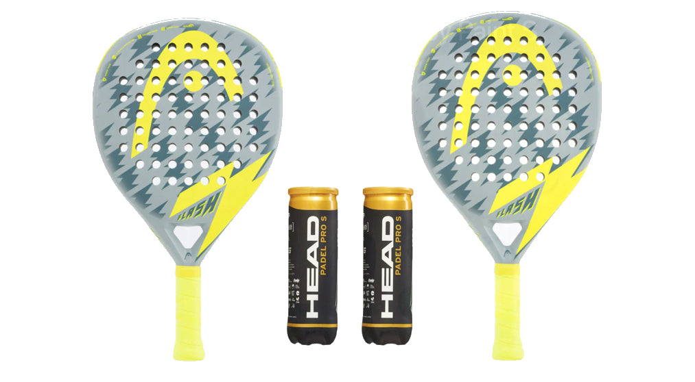 Paketet för nybörjarparet som vill ha lite extra kraft. Head Flash-racket har en teardrop-form som ger mer kraft än den genomsnittliga nybörjarracketen. Racketen är tillverkad av glasfiber, vilket ger en förlåtande effekt och kan vara till hjälp i den första långa fasen för den typiska nybörjaren. Kraften kommer från "trampolineffekten" som kommer från det mjuka skummet som racketen är tillverkad av. Head Pro S-bollen är Heads svar på den snabbaste bollen. Lufttrycket i bollen är något högre än i en genomsnittlig boll, vilket automatiskt ger lite fart åt spelet.