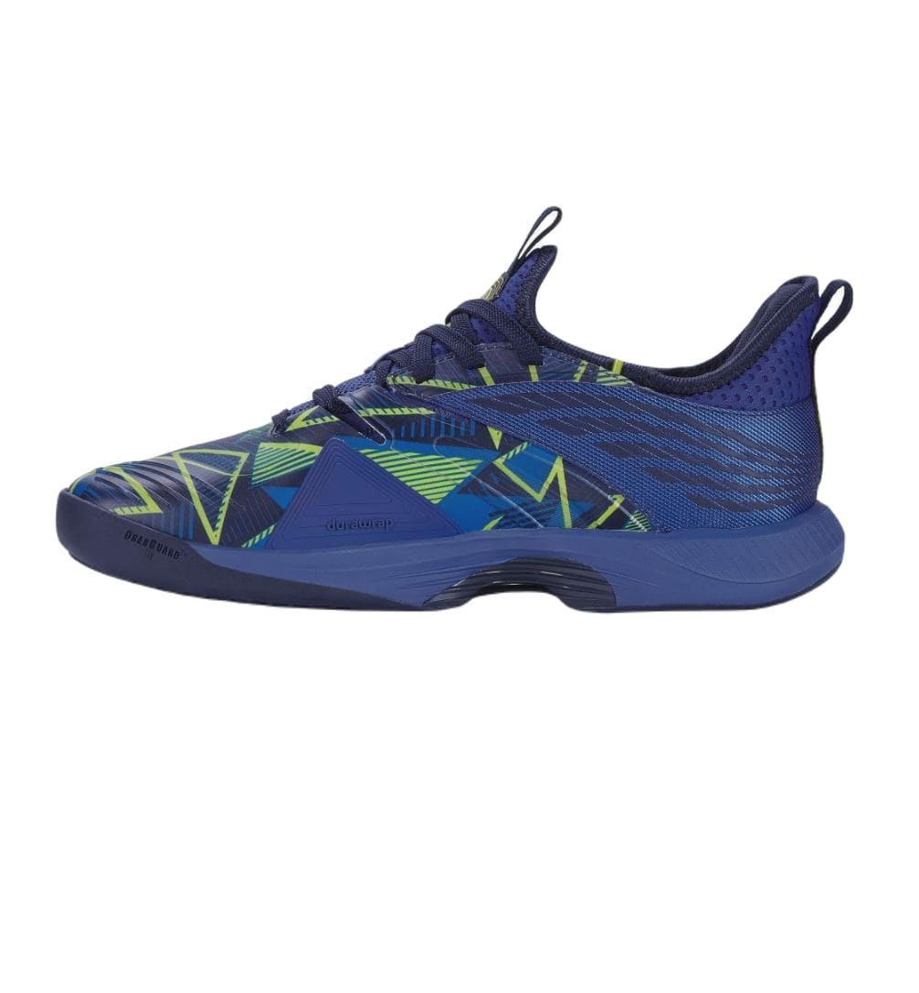 K-Swiss SpeedTrac Padelskor (Bländande blå/Statlig blå/Kvällslysing) är utformad för att ge dig snabbhet och optimal rörelse på padelbanan. Den nya 180 PSC-designen ger extra stöd för mellanfoten, vilket har kombinerats med ett nytt mönster på yttersulan för maximal hastighet på banan. Skons ovandel är tillverkad av ventilerande mesh för att din fot ska kunna andas på bästa möjliga sätt. En lätt och snabb padelsko från K-Swiss.