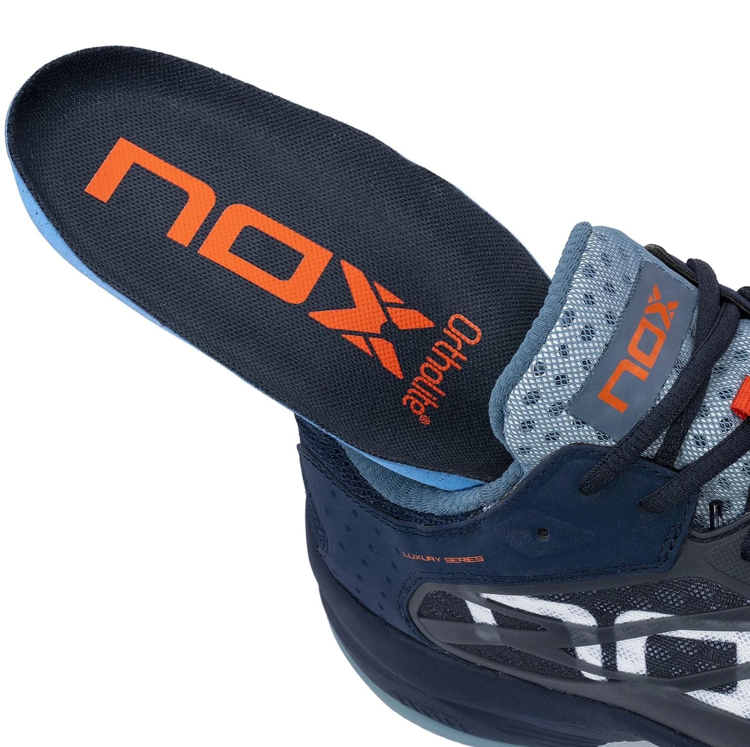 Nox AT10 Luxury padelsko är utformad för att ge dig bästa möjliga rörelse på padelbanan och samtidigt minimera risken för skador. Den är godkänd och rekommenderad av den spanska podiatrikern Marta Rueda.