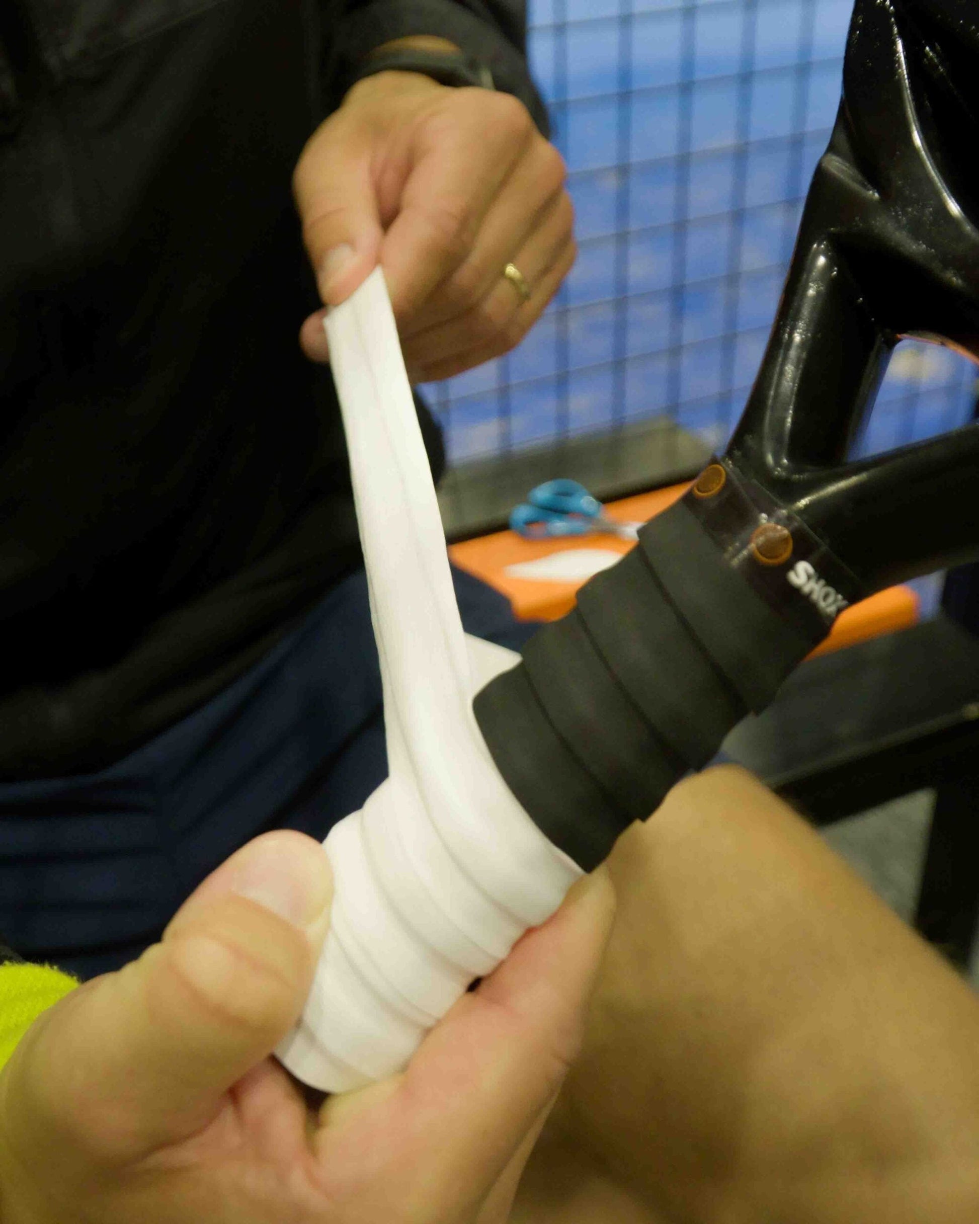 Som standard ska Shox Vibra Undergrip i princip sättas på i bara ett tunt lager, så att det inte finns någon överlappning i grepplindan. Shox rekommenderar dock också att du kan placera den med antingen lite eller mycket överlappning för att få lite mer struktur i den.