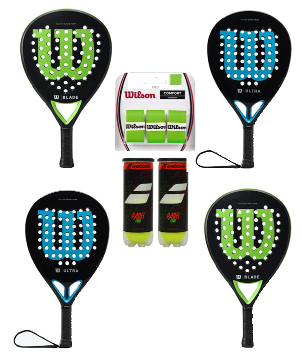 Den perfekta paketlösningen för familjer som vill spela padel. Med 4 racketar och grepp från Wilson och bollar från Babolat är du redo för en mysig match. Båda de två Wilson-racketen är lämpliga för nybörjare och medelgoda spelare. När man jämför de två racketarna ger Wilson Blade Ultra Teams diamantform dig lite mer säljkraft, medan Wilson Blade Teams droppform passar för allroundspelaren som prioriterar en blandning av kontroll och kraft. Ha kul med den